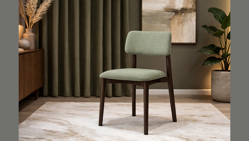 Μια άνετη και μοντέρνα καρέκλας τραπεζαρίας με κομψό σχεδιασμό.  Είναι κατασκευασμένη από ξύλο μασιφ στα πόδια και ύφασμα  στην πλάτη. Μπορείτε να επιλέξετε το χρώμα ξύλου και το ύφασμα επένδυσης.